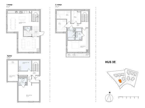Kjelleretasje: Gang med adkomst fra parkeringskjeller, kjellerstue, bad, gang, bod / teknisk rom / vaskerom, kjellerstue med bod.