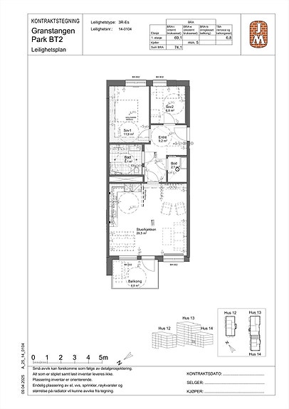 Totalt bruksareal BRA: 74 kvm