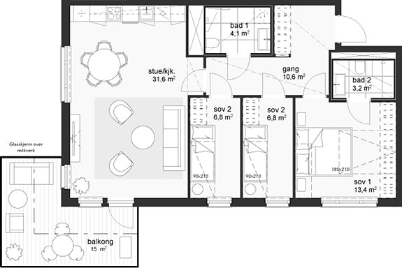 Leiligheten bygges med lys en-stavs eikeparkett, generøs takhøyde og store vindusflater. Balansert ventilasjon sørger for godt inneklima og lave kostnader til oppvarming. Som kjøper kan du velge mellom tre ulike interiørstiler uten ekstra kostnad. Konseptene FUNKIS, JÄRVENPÄÄ og LØKKA definerer veggfarger, kjøkkenfronter og -håndtak, benkeplate og fliser på bad. Du kan lese mer om innredningsvalgene i prospektet. Leiligheten kvalifiserer til Grønt Boliglån. Ta kontakt med selger for mer informasjon.