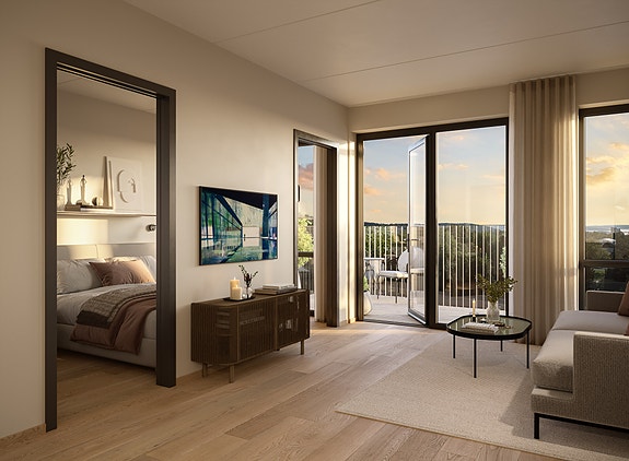 Flere av 2-roms leilighetene har adkomst via to skyvedører fra stue, noe som sikerer maksimal plassutnyttelse..jpg