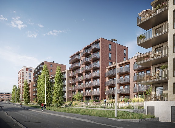 Prosjektet består av 136 leiligheter med god variasjon i størrelser, der de aller fleste har sydvendte og solrike balkonger.