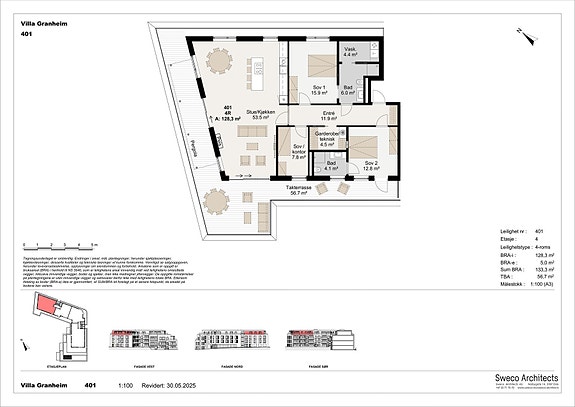 Totalt bruksareal: 133,0m²