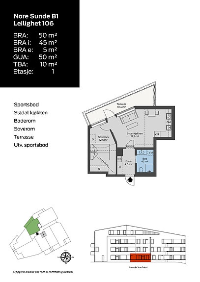 - Parkeringsplass i lukket garasjeanlegg (gjelder ikke for leilighet 102, 103, 105, 106, 201 og 206)