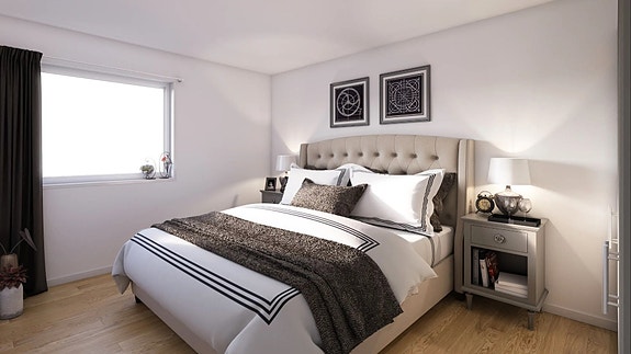 I stuen leveres det eikeparkett eller laminat på gulvet, på veggene er det MDF faspanel plater, muligheter for flere fargevalg innenfor standard fargene til Huntonit. Alle leiligheter vil ha store vinduer som gir godt med innslipp av lys og sørger for et trivelig boforhold.
