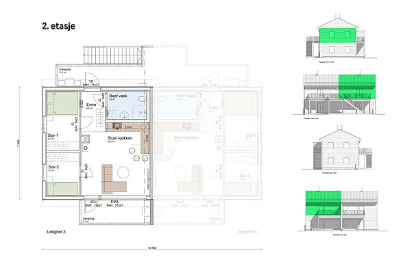 Moderne og-arealeffektiv leilighet i 4 mannsbolig