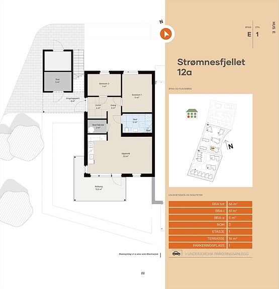 En moderne og lettstelt leilighet med to soverom, åpen stue- og kjøkkenløsning og god oppbevaringsplass. Her får du en solrik terrasse som forlenger oppholdsrommet utendørs, og carport med egen parkeringsplass. Et perfekt hjem for deg som ønsker en praktisk og stilren bolig i rolige omgivelser.