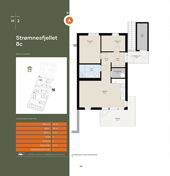 Boligen har to soverom, et moderne bad, og en romslig stue- og kjøkkenløsning som fører ut til en koselig balkong. Perfekt for rolige morgener eller hyggelige kvelder. Her får du også en praktisk bod og smarte oppbevaringsløsninger som gjør hverdagen enkel. Leiligheten ligger med naturen som nærmeste nabo, samtidig som det er kort vei til handlemuligheter og kollektivtrafikk.