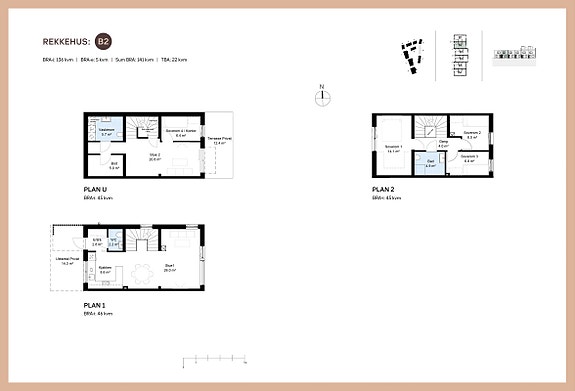 Arealet er beregnet ut fra Norsk standard NS 3940:2023. BRA-i: Internt arealet innenfor boligens omsluttende vegger, inkludert sjakt. BRA-e: Eksternt areal som boligen har eksklusiv bruksrett til, men som ikke ligger i boligen, f.eks. kjellerbod. BRA-b: Areal for innglasset balkong med veggareal. Total BRA = Summen av BRA-i, BRA-e og BRA-b. TBA er areal på terrasse og balkong. Arealet oppgis ved salg, men inngår ikke i BRA. Oppgitt romareal er netto romareal. De oppgitte arealer er å betrakte som cirka-arealer. Partene har ingen krav mot hverandre dersom arealet skulle vise seg å være 5 % mindre / større enn det oppgitte areal.