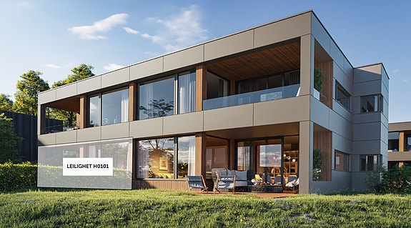 Leilighetene i første etasje får en større terrasse på hele 24 kvadratmeter. I tillegg har en et privat hage areal for de som ønsker å dyrke grønnsaker eller blomster.