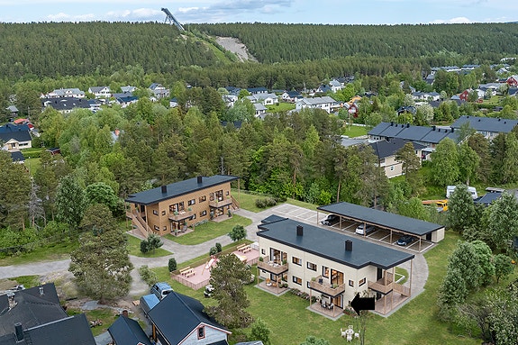 Badene leveres med vegghengt toalett, dusjhjørne, baderomsinnredning og opplegg for vaskemaskin. Gulvvarme gir behagelig oppvarming, mens balansert ventilasjon sørger for et godt inneklima. Leilighetene i andre etasje har ekstra stor takhøyde som gir et luftig preg. Hver bolig har egen balkong - perfekt for hyggelige stunder ute. Alle enheter får egen carport og tilgang til felles lekeplass.
