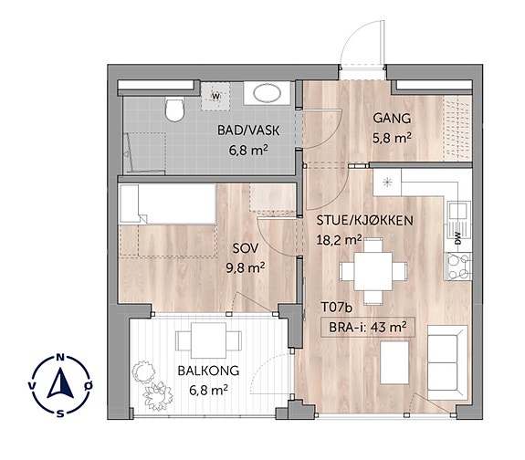- 43 m² (BRA-i)