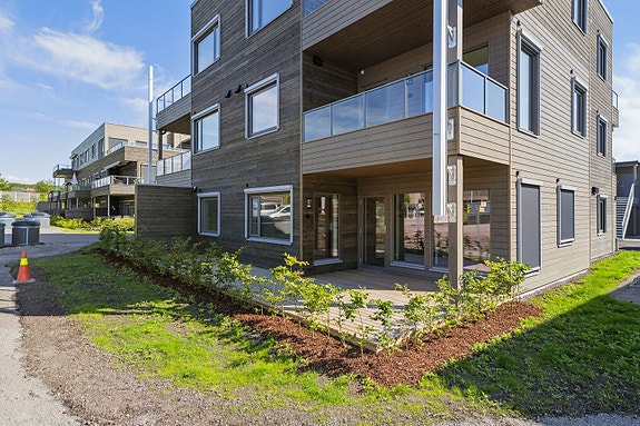 Leilighet F2 ligger i bytters første etasje med stor terrasse mot øst. 2 soverom og gjestetoalett.