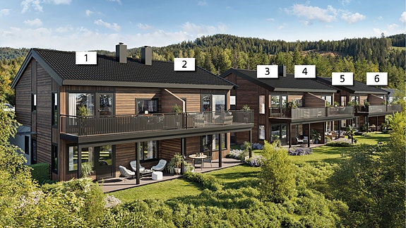 Enhet 1 er tomannsboligen helt til venstre i bildet (illustrasjonsbilde)