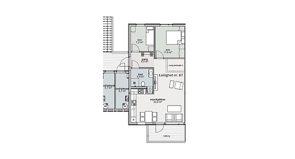 Prospekt som er utarbeidet i forbindelse med salg av boligen er kun ment som en illustrasjon. Alle illustrasjoner, tegninger og foto er kun ment å gi inntrykk av ferdig bebyggelse, og er ikke bindende for utformingen av den endelige bebyggelsen. Det kan således inneholde elementer som ikke inngår i utbyggers leveranse, både når det gjelder utvendige forhold og innredning.