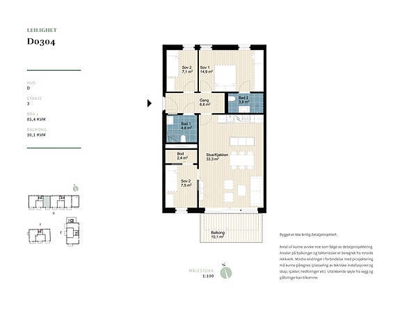 De oppgitte arealer er hentet fra akitekt. Vedlagte plantegninger er ikke målbare.