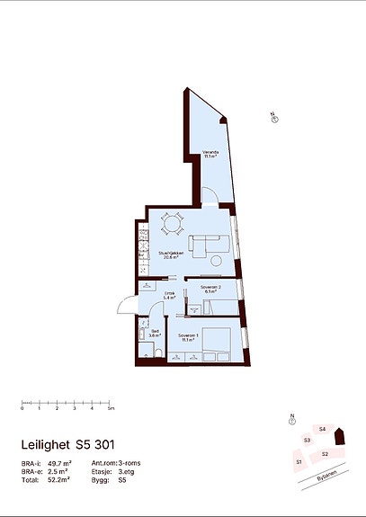 Vi har nå for salg trinn 3 som består av bygg S5: S5 består av 23 enheter i bygg som går over 4 hovedplan.