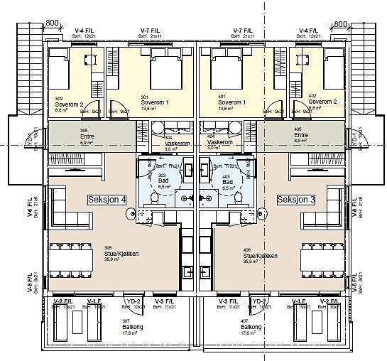 - Boligen blir levert med seriekoblet røykvarslere og brannslukkingsapparat.