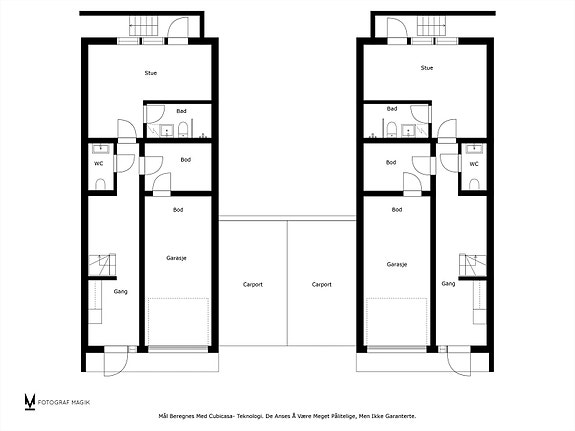 Hver bolig har parkering i integrert garasje og tilhørende carport med innvendig dør fra garasje til hus.