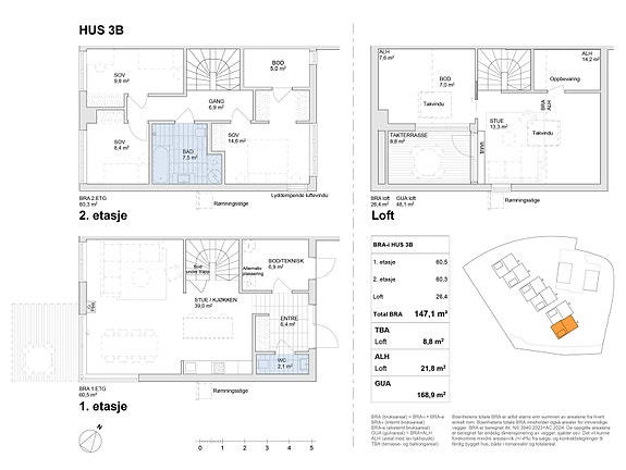 Alle innvendige og utvendige arealangivelser er beregnet av arkitekt og er beregnet etter Veileder NS3940:2023.
