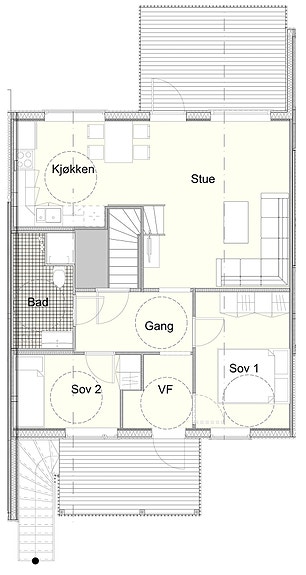 Leiligheten leveres med innredet loft. Loftet inneholder stue, soverom, oppholdsrom, bad og bod. Loftet vil være på 46 kvm.