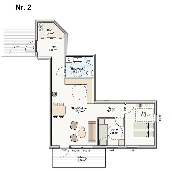 De pene leilighetene er naturligvis topp moderne og innredes i lyse delikate fargetoner som tiltaler de fleste. Vi holder en særdeles god standard, med blant annet lekre bad med fliser på gulv, parkett på gulv i alle oppholdsrom og tidsriktig kjøkken med integrerte hvitevarer fra anerkjent kvalitetsleverandør. Leilighetene har gode planløsninger og leveres med garderobeskap til hver sengeplass. Det vil bli montert balansert ventilasjon for å holde inneklimaet komfortabelt. Alle leilighetene vil også være utstyrt med behagelig vedfyring, som kommer godt med i vinterhalvåret. Er man tidlig ute, er det selvfølgelig mulig å gjøre individuelle endringer og påvirke leiligheten i større grad.