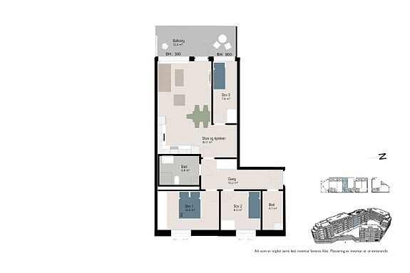 - 3 soverom med garderobeplass