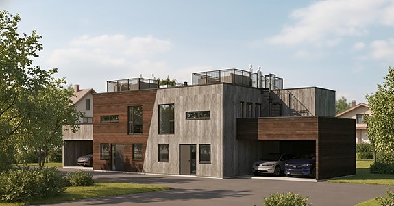 SON: Liahagen 2.0 - Arkitekttegnet prosjektert tomannsbolig - Takterrasse - Carport - Hage - Utsikt
