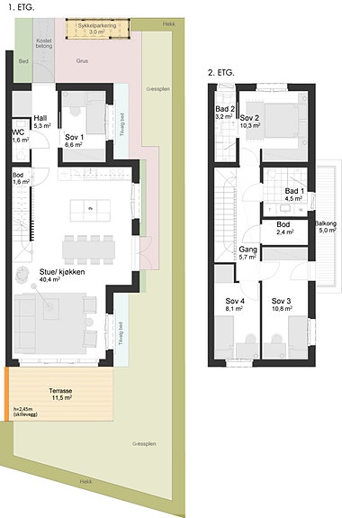 Lekkert 2-plans enderekkehus med stor hage. Rekkehuset har åpen stue- og kjøkkenløsning med direkte utgang til terrasse. Det er 4 soverom, to bad og wc. Balansert ventilasjon sørger for godt inneklima og lave kostnader til oppvarming. Ny bolig kommer med fem års reklamasjonsrett og oppfølging fra utbygger. Boligen selges inkl. 1 parkeringsplass. Forutsatt ledige plasser kan ekstra parkeringsplass kjøpes. Ta kontakt med selger for mer informasjon.