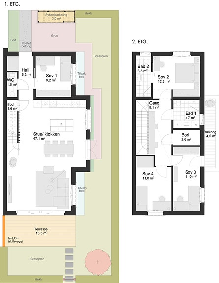 Lekkert 2-plans enderekkehus med stor hage. Rekkehuset har åpen stue- og kjøkkenløsning med direkte utgang til terrasse. Det er 4 soverom, to bad og wc. Balansert ventilasjon sørger for godt inneklima og lave kostnader til oppvarming. Ny bolig kommer med fem års reklamasjonsrett og oppfølging fra utbygger. Denne boligen selges inkl. 2 parkeringsplasser, en på bakkeplan på felt B6 og en i parkeringskjeller under felt B4 og B5. Forutsatt ledige plasser kan ekstra parkeringsplass kjøpes. Ta kontakt med selger for mer informasjon.