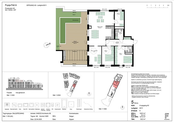 Nå tilbyr vi 10 stk 3-, 4- og 5-roms leiligheter i størrelser fra 99 m² til 146 m² BRA-i på toppen av Frysjatunet.