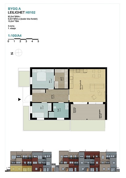 A H0102 - Flott 3-roms endeleilighet på bakkeplan - Hovedsoverom med stort garderoberom - Terrasse på 15 kvm - Carport