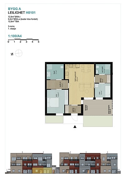 A H0101 - Innbydende 3-roms midtleilighet på bakkeplan - Hovedsoverom med privat bad og garderobe - Gjestebad - Carport