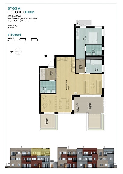 A H0301 - Stor og delikat leilighet - 3 uteplasser - Vedovn - 2 bad - 2 (3) soverom - P-plass i garasje