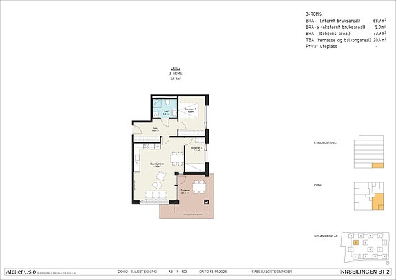 - TBA (terrasse-/balkongareal) 20,40 kvm