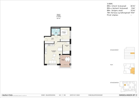 Tredje salgstrinn omfatter totalt 49 selveierleiligheter i varierte størrelser fra 38,7 til 118,1 m² BRA-i. Alle leilighetene får private uteplasser, der mange er inntrukket og plassert på hjørner for å gi gode solog utsiktsforhold. Noen balkonger er i tillegg delvis utkraget. Leilighetene på bakkeplan får lune og grønne uteplasser - enkelte med privat forhage.