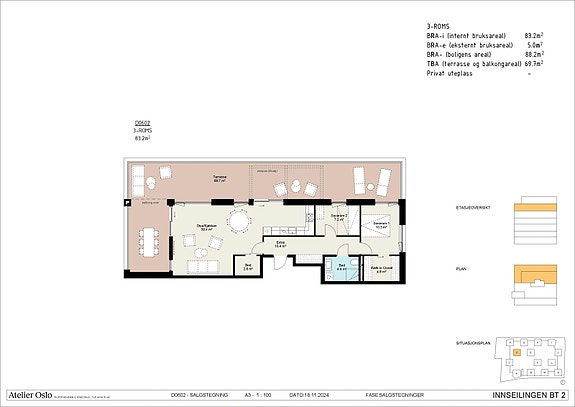 - TBA (terrasse-/balkongareal) 69,70 kvm