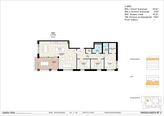- TBA (terrasse-/balkongareal) 17,80 kvm