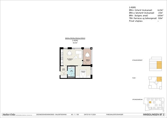 - BRA-e (eksternt bruksareal): 2,50 kvm