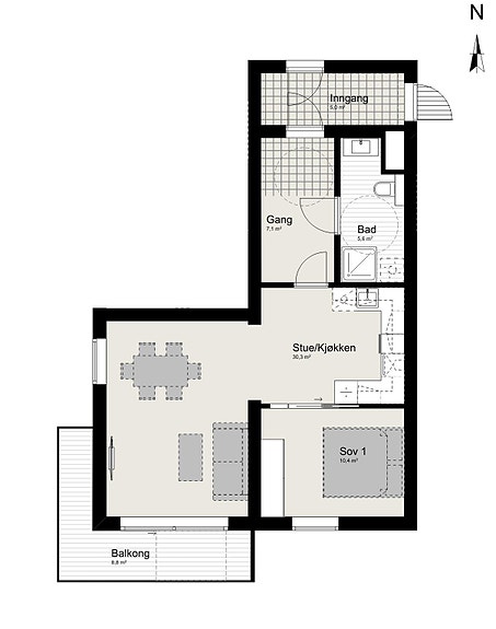 Leiligheten inneholder, entre, bad, 1 soverom og åpen stue kjøkkenløsning. Sportsbod i p-kjeller.