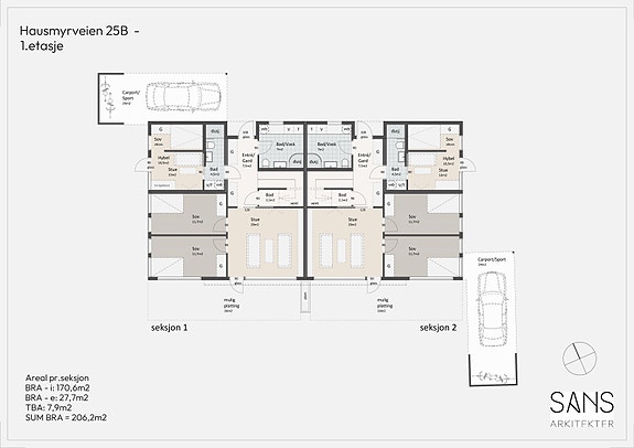 - BRA-i (internt bruksareal): 171 kvm