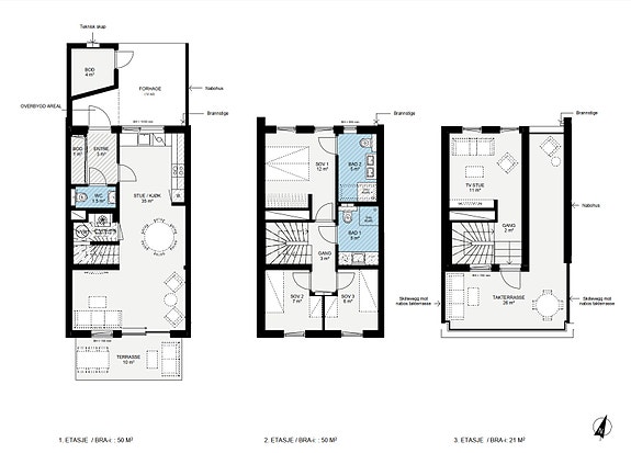 Arealer og fordeling per etasje (NY)