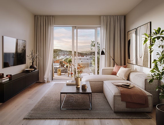 Velkommen til en lekker leilighet med meget god planløsning og flotte balkonger på begge sider. Leiligheten ligger i 7. etasje fra elvepromenaden. Stue og kjøkken er i underkanten av 50 kvm og får meget godt lysinnslipp både fra balkongvinduene og fra sidevinduene. Innholdsrik kjøkkeninnredning med flott kjøkkenøy med integrert induksjonstopp og platetoppventilator. Det er plass til romslig spisestue. Stuen får fin plass til sofagruppe og tv. Fra kjøkken er det skyvedør til stor balkong, hvorav halvparten er innglasset. Her er det nydelig utsikt mot elva, nedover elva, mot Gjøvik gård og Mjøsa. Lyst og koselig hovedsoverom med skyvedørsgarderobe og privat bad. Badet er romslig og består av badekar, dobbel håndvask, dusj og wc. Det er hyggelig med vindu på bad som slipper inn dagslys. Gjestesoverom og gjestebad med adkomst fra gang. Det er skyvedør fra gang til stue. Gangen har gode garderobemuligheter. Praktisk bod med opplegg til vaskemaskin. Det tredje soverommet er romslig og har flere bruksmuligheter. Det kan fint fungere som en ekstra stue, eller som et gjesterom eller som et kombinert stue/soverom ved at man kan plassere en seng i nisjen hvor det er tegnet inn en skyvedørsløsning. Rommet har skyvedør til balkongen som vender mot gårdshagen. Her får du ettermiddags- og kveldssol og kan nyte lune kvelder. Det medfølger garasjeplass.