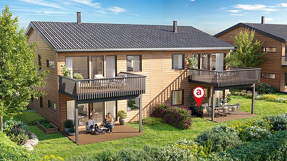 Romslig og funksjonell leilighet i 1. etg. med 2-3 soverom. 2 terrasser gir mulighet til å nyte uteplassen gjennom hele