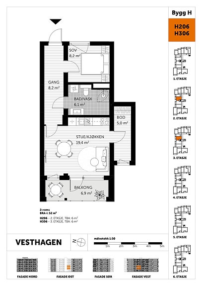 2-roms leiligheter - fra 36 kvm til 52 kvm BRA-i