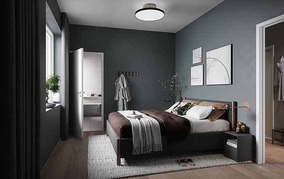 C302 og C202: Hovedsoverom er 13/14 kvm. med tilgang til eget bad.