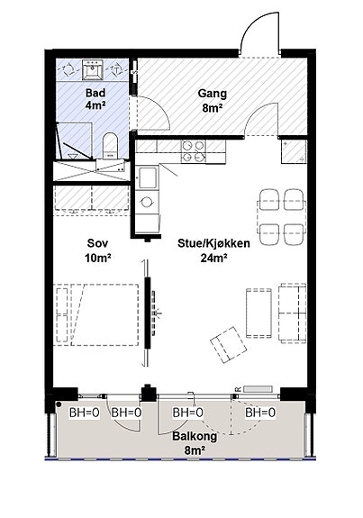 2-roms leilighet med god planløsning. Sydvestvendt balkong som vender mot gårdstunet.* Mulighet for Bostart eller Deleie