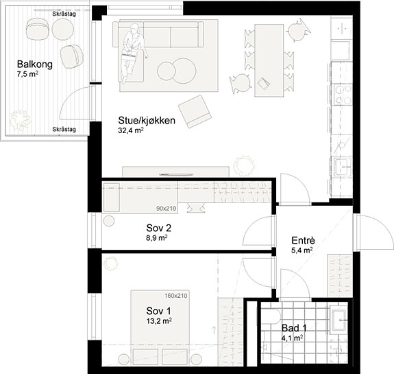 3-roms leilighet med generøs takhøyde, store vindusflater og lys en-stavs eikeparkett. Leiligheten har en romslig, åpne stue- og kjøkkenløsning med utgang til balkong. Delikat flisbelagt bad med plass til vaskemaskin. Du kan velge mellom tre ulike interiørkonsepter kostnadsfritt. Alle 3- og 4-roms leiligheter kan kjøpe èn (1) p-plass av kr 490 000.