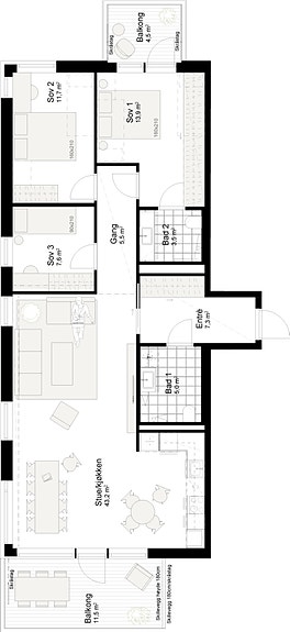 Stor 4-roms leilighet med generøs takhøyde, store vindusflater og lys en-stavs eikeparkett. Leiligheten har en stor, åpen stue- og kjøkkenløsning med god plass til både spise- og sofagruppe. Herfra har du også utgang til en romslig balkong. 3 soverom hvorav hovedsoverom har eget bad og balkong. Delikate flisbelagte bad med plass til vaskemaskin. Du kan velge mellom tre ulike interiørkonsepter kostnadsfritt. Alle 3- og 4-roms leiligheter kan kjøpe èn (1) p-plass av kr 490 000.
