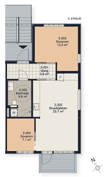 - Første etasje får markterrasse, mens leilighetene i andre etasje får egen romslig balkong.
