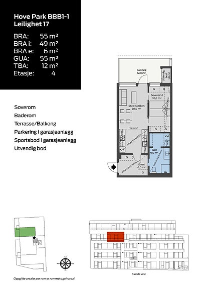 - Eget balansert ventilasjonsanlegg med varmegjenvinning i hver boenhet.
